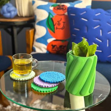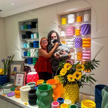 Studio Dimension is a modern 3D printed home decor brand created by partners Nick Lessells and Kait Cutler from their Brooklyn apartment and is now operated out of Columbus, OH.
